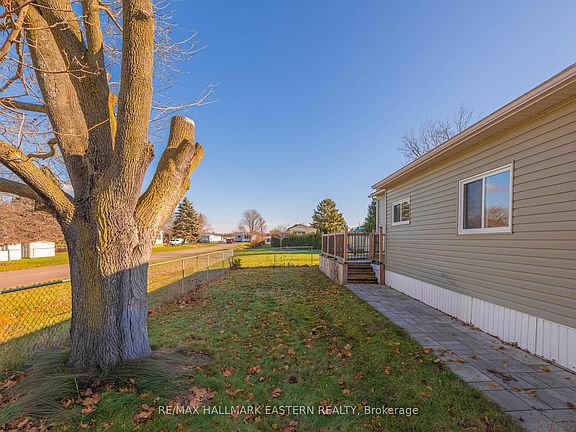 3 Bedroom Mobile or 2 Plus A Den. Eat In Kitchen With Newer Windows. Spacious Living Room Or Combined Living And Dining Rooms. Comes Complete With 5 Appliances And Separate Laundry Area. Mobile Has Newer Vinyl Siding, Skirting, A/C Unit, Pitched Roof And Shingles and New Side Deck (2020). Nice sized Lot at 50X150 And Is Partially Fenced, Perennials Planted. Fees are as follows: Land lease $680, realty tax $51.67, water testing and consumption $39.57 equals $771.24 per month total for Park Fees.