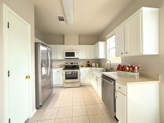 Rare town-home in Leander, in a private gated community, with gated community pool, playground, disc golf course and park with walking trails and BBQ area. A walking trail runs behind the backyard adding extra greenery, space, and view to your living experience. Large 1,590 SF home, with remodeled bathrooms and kitchen. Kitchen and dining area faces private backyard. All 3 bedrooms upstairs. 2.5 bathrooms. 1-car attached garage with extra second car/guest parking spaces in the gated street. Lots of closet space throughout the house. Stainless steal appliances. All tile downstairs with carpet on the stairs and upstairs. 2" faux wood blinds. Close to popular restaurants and shopping. Walk to Leander High School. HOA fees paid by owner and include the usage of community pool and front-yard maintenance. Front yard maintained by HOA, tenant maintains the backyard. Non-smoking home.