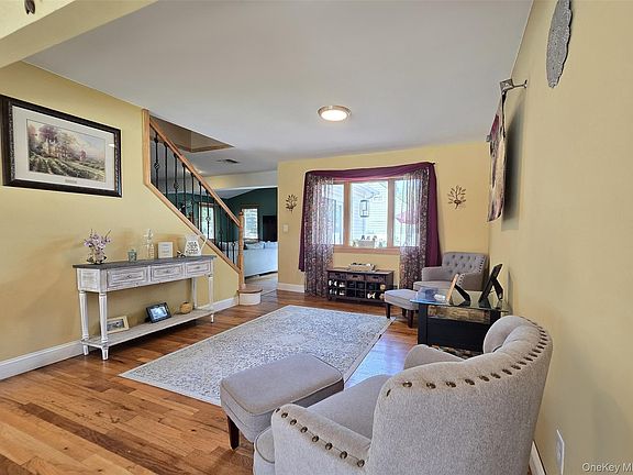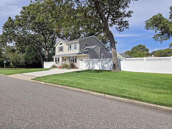 Welcome to this spacious 4 Bedroom, 2 Full Bathroom home that blends comfort and style. Inside you'll find Hardwood floors throughout an oversized family room with a natural gas fireplace. Eat-in-Kitchen features granite countertops & backsplash, recessed & undermount lighting, and stainless steel appliances. Formal dining room provides an ideal setting for hosting and entertaining. Upstairs bathroom is 2 years young. Cesspool (2021), gas heating and central air conditioning. Step outside to enjoy a beautiful backyard with custom pavers and maintenance free vinyl fencing. In-Ground sprinklers. This home has amazing curb appeal and a warm inviting feel, both inside and out.