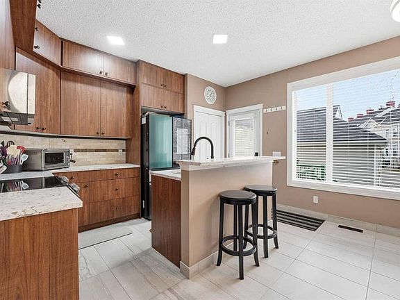 This beautifully updated end-unit townhouse is a must-see, featuring 3 bedrooms, 3.5 bathrooms, a fully finished basement, a sunny southwest backyard, and a private single-car garage. Recently renovated throughout, this home features a brand-new kitchen with stainless steel appliances, Stone countertops, new lighting, stunning porcelain tile flooring, and plush new carpet for a fresh, modern feel from top to bottom. Step inside to an abundance of natural light pouring through large windows, creating a warm, inviting atmosphere. The spacious living room is perfect for relaxing or hosting guests, complete with a cozy fireplace as the focal point. The newly renovated kitchen offers ample cabinetry, a functional island with seating, awesome Samsung appliances and a bright breakfast nook. Upstairs, the primary suite is your private retreat with a generous sitting area, a full ensuite, and a large closet. An additional upper-level bedroom also features its own ensuite bathroom, along with a conveniently located laundry room. The lower level offers fantastic flexibility with a spacious rec/flex room perfect for a gym, play area, or secondary living space, plus a third bedroom, a full bathroom, and plenty of storage. Outside, enjoy a fully fenced yard and a deck updated in 2022, and astro turf really makes the yard pop. A convenient gas line for your BBQ, plus low-maintenance living thanks to condo-managed grounds. The single heated garage also has added storage in the rafters. Nestled in desirable McKenzie Towne, you’re steps from a green space and playground, and just a short stroll to vibrant McKenzie Towne Centre, home to shops, restaurants, grocery, fitness, and transit options, including Park & Ride with express service downtown. Easy access to Deerfoot Trail, Stoney Trail, and nearby amenities ensures ultimate convenience. This one is move-in-ready and truly turnkey. Book your private showing today!