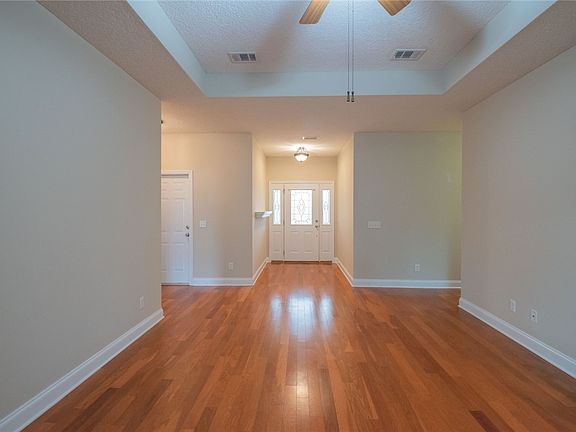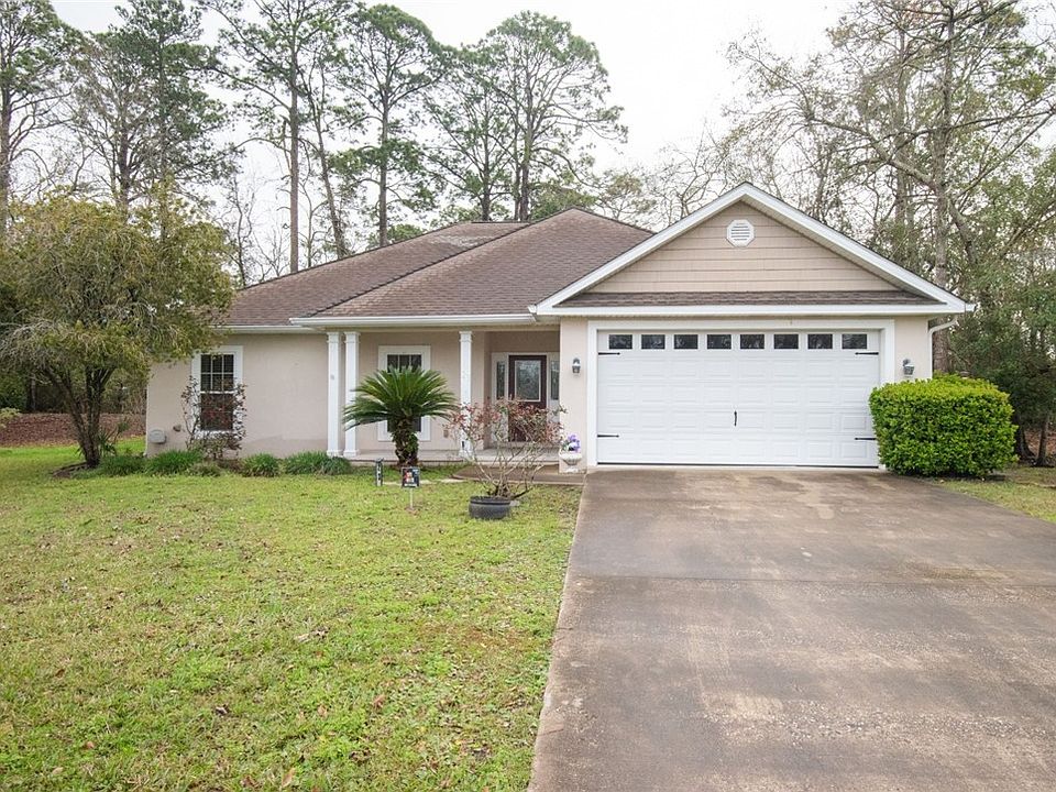 Welcome to this tucked away, gorgeous home! This 3 bedroom, 2 bath home has hardwood and tile floors in the living areas with carpet in the bedrooms. There is new paint throughout! There is plenty of room with the split floor plan, the primary suite on one side, the other two bedrooms and bath across the way. In the primary suite, there are double walk in closets, double vanity, a soaking tub, separate shower and water closet. The kitchen, great room and dining room/flex space are in the middle of the action. Kitchen counter tops are granite. There is a fabulous screened porch that spans the back of the house to enjoy the outside without the worry of the pesky creatures. There is also a shed for any equipment that doesn't belong in the freshly painted 2 car garage. There is a storage closet in the garage with the water heater. Seller is offering a home warranty as well. Located close to all amenities, this beauty won't last long. Make your appointment to see it today!