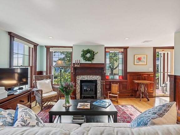 Live in one of New England's most lively small cities in the highly desirable Munjoy Hill. This beautifully recently-updated Greek Revival available unfurnished sits on a bright hilltop with ocean views, and features 2 bedrooms, 3 bathrooms, and two office/flex rooms. The first floor includes a sunny foyer/office, a formal living room, a bathroom, and a handy kitchenette that opens directly to a private backyard patio (ideal for guests or a private suite with its own full bath). The second floor offers a sun-filled, south-facing living, a dining area that flows from the updated kitchen beneath tall ceilings with water glimpses, and a bedroom with a full en-suite bath. The third floor includes a large primary bedroom with en-suite bath and laundry, ocean views, plus an office/nursery with built in bookshelfs. Updated amenities include central air, high-efficiency windows, central vacuum, full winterization and a whole-house generator. Outside, there is a large private yard with extensive landscaping and raised garden beds, a deck, and a beautiful two-car garage that could also function as a workspace/art studio. Munjoy Hill delivers morning waterfront walks on the Eastern Prom, easy access to East End Beach and paddleboarding, a close-knit neighborhood vibe with local cafes and markets, and quick connections to downtown Portland.