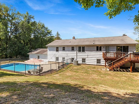 23 West View has it all! This massive 5 bed 3 bath home boasts 3200sqft of immaculate above grade living on a pleasant cul-de-sac. The sparkling pool has a new liner and paver patio making it the ideal summer oasis. Inside, the gleaming hardwood floors connect you to the large living room and updated kitchen with stainless steel appliances and quartz countertops. The spacious dining room overlooks the porch with composite decking. The primary suite with walk-in closet and updated bath is the anchor of this floor, surrounded by 3 additional bedrooms and a beautifully renovated hallway bath. Downstairs is completely finished with a grand family room complete with gas fireplace. An additional bedroom, full bath and gigantic second kitchen make it ideal for an in-law or multigenerational living. Natural gas, Central air, underground utilities and a newer chimney make this turn-key home a must see!