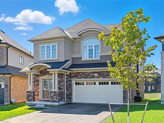 Welcome to Your Dream Home in the Prettiest Town of Paris, Ontario! Step into modern elegance with this stunning brand-new build offering 5 spacious bedrooms and 4 beautifully designed bathrooms. Nestled in one of the most picturesque communities in Ontario, this home combines luxurious finishes with the warmth and functionality every family needs. From the moment you walk in, you're greeted by a grand high-ceiling entrance and gleaming hardwood floors that flow throughout the main level. The heart of the home is the open-concept eat-in kitchen, featuring quartz countertops, stainless steel appliances, modern lighting, and a layout that effortlessly blends style with functionality. Just off the kitchen, the cozy family room invites you in with a gas fireplace framed by custom built-in shelving—the perfect place to relax or entertain. Upstairs, you’ll find five generously sized bedrooms, including a serene primary suite with its own private ensuite bath. With four bathrooms, morning routines and evening wind-downs are smooth and seamless for the whole family. The full basement offers endless possibilities, ready for your personal touch—whether you dream of a home gym, media room, or additional living space. Outside, enjoy the privacy and potential of an oversized pie-shaped yard, stretching over 144 feet deep—ideal for a future pool, garden oasis, or backyard entertaining. Located just minutes from highway access, shopping, top-rated schools, parks, and the gorgeous local trails that make Paris such a special place to call home. Don't miss your chance to own this exceptional property in one of Ontario’s most sought-after towns.