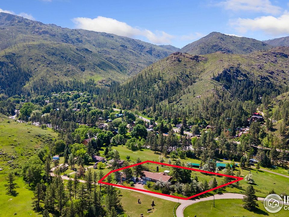 Breathe in the mountain air and take in the views in this serene 1.5-acre property that borders a national forest and overlooks the Cache la Poudre River! Located at the very start of the Hewlett Gulch trailhead, the setting incorporates a seasonal creek and scenic hiking right outside the front door. A single-level design keeps everyday living convenient inside this mountain retreat. The main living area boasts beamed ceilings and large windows that pull in natural light and frame incredible views of the surrounding hills and forest. At the heart is a floor-to-ceiling, multi-sided petrified wood fireplace centerpiece that anchors the living and dining areas. The kitchen offers a perfect blend of style and function with wraparound granite countertops, modern appliances, and plenty of storage. The primary suite features a spacious walk-in closet and its own ensuite bath and outdoor access, giving you a restful retreat after enjoying the outdoors. Outside, a raised gazebo offers 360-degree views of Colorado's stunning natural landscape. Another unique feature is the raised grassy terrace-the original foundation of a historic home-complete with a stone chimney, the perfect spot for stargazing or sunset dinners. A 712sqft guest cabin gives visitors their own cozy space, great for company, multi-generational family, or even as a creative studio. The oversized 2-car attached garage comes with a workshop area, and an additional storage shed for all your outdoor gear. The house also comes with a 6kg propane backup generator that is wired with a separate circuit for the generator. Additionally, the property features a 5-zone in-ground sprinkler system with 3 heads per zone, ensuring the landscaping is maintained effortlessly. Owned solar panels help power your lifestyle with energy savings and off-grid potential. And best of all, you're just a comfortable 30 minutes away from Fort Collins. No HOA! The square footage includes the 1,504 sq ft home plus the 712sqft guest house.