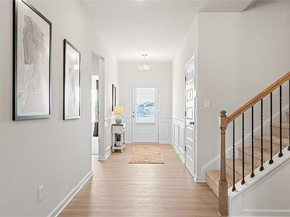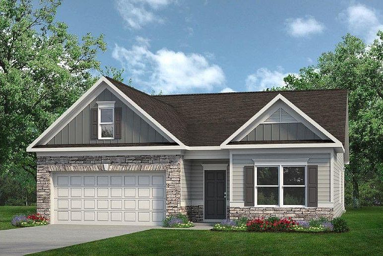 Move-in Ready December! The Langford ranch plan by Smith Douglas Homes, located in the charming community of Laurel Ridge. Discover the ease of single-level living in this beautifully designed new construction home that combines comfort, style, and functionality. Step into a light-filled open-concept layout where everyday living feels effortless. The spacious family room with an electric fireplace creates a warm and welcoming atmosphere, ideal for relaxing evenings or entertaining guests. The open island kitchen features granite countertops, and abundant cabinet space, seamlessly connecting to the bright dining area overlooking the back yard. The covered porch is perfect for outdoor dining or morning coffee. The tray-ceiling primary suite offers a luxurious retreat with a spa-inspired tiled shower, dual vanities, and a walk-in closet that provides direct access to the oversized laundry room for added convenience. LVP flooring flows throughout the main living areas, providing easy maintenance. Experience a lifestyle where comfort meets convenience—where open spaces, designer finishes, and quality craftsmanship come together in a home built for the way you live today. Nestled in the desirable Rock Springs area, this home offers proximity to local parks, shopping, and dining while maintaining a peaceful, small-town feel. Enjoy low-maintenance new construction living. Nine ft ceiling heights throughout the home. Special incentives with the use of our preferred lender. Photos representative of plan not of actual home.