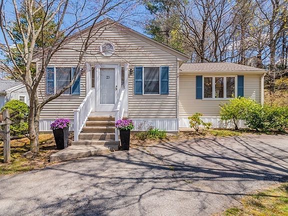 Charming 3 Bedroom, 2 Full Bath Ranch on 1/4 acre with Trex deck, fenced level yard, circular driveway, plenty of lovely plantings, plus lots of parking space. Lovely entry Sitting/Office space with gorgeous natural light from the skylight and bay window. Renovated, wide, granite galley Kitchen with stainless appliances and gas stove. Open Floor plan spacious Dining Room/ Living Room with sliders to backyard and side entry. Three First Floor Bedrooms and tiled bath with tub. Bonus extended family living arrangement in the lower level with Full Bath plus separate entry. Utility Room in the Lower Level with washer, dryer, and extra WC. Located minutes to all conveniences, Horn Pond walking trails, highway, commuter rail stations, shopping, award-winning restaurants, and just 20 minutes to downtown Boston.