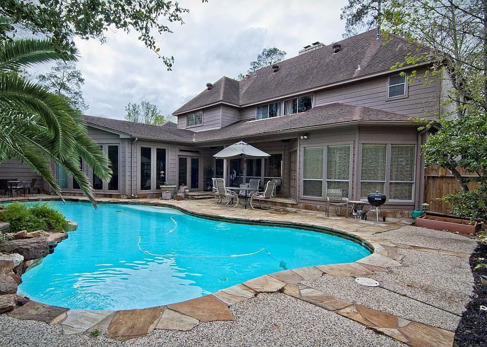 Traditional Home just minutes from all the Entertainment areas of The Woodlands!Designed for a family, these homeowners installed large-sized easy care tile everywhere downstairs. Maintenance is kept to a minimum! There'a pool, sprinklers front and back and an oversized 2 car garage. Granite in the kitchen-upgrades to the master bath, newly-installed frieze carpet: View this home today!