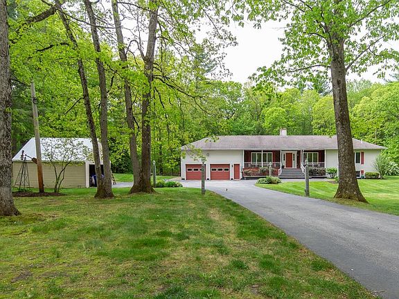 Inviting and lovingly maintained 3-bedroom, 2-bath ranch on a spacious, beautifully landscaped lot! Owned by the same family for 40 years, this home features solid construction, “good bones,”. The home offers one floor living with bedrooms, bathrooms, laundry and lving space all on one level. Downstairs, there is a large finished area ideal for extended stay guests. Both levels have central a/c and forced hot air heat on their own zones. Enjoy the oversized 2-car attached garage with auto openers, plus a detached garage for extra storage or hobbies. Conveniently located near shopping and right on the MA border, this home is a must-see for those seeking space, flexibility, and long-term pride of ownership.