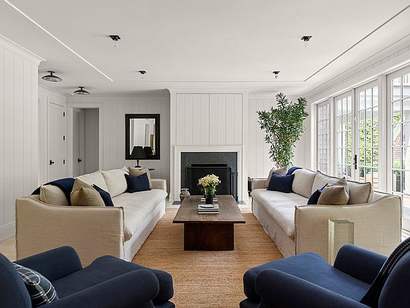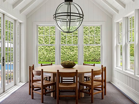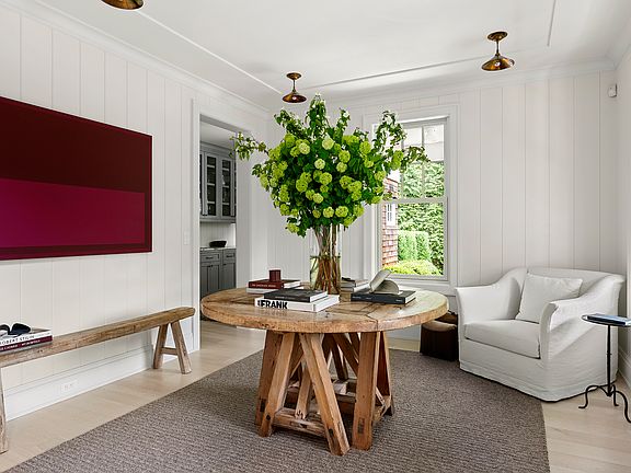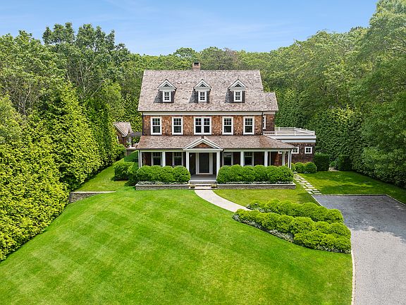 Discover this exquisite residence at 23 Wooded Path, nestled on a private, gated 1.1 acre parcel in Sag Harbor Village. This remarkable property unveils a masterfully designed four bedroom, five full bath, 2 half bath home, embodying the pinnacle of sophisticated living - both indoors and outdoors. As you step through the elegant entryway, you're greeted by an open floor plan that seamlessly merges the interiors with the natural beauty found outside. The main floor is adorned with walls of windows, flooding the space with sunlight and offering serene views of the pristine heated gunite pool. Entertain in style in the stunning glass dining room or unwind in the expansive family room complete with a fireplace and cozy furniture. The glamorous chef's kitchen, featuring an adjacent open concept, butlers pantry, is a culinary enthusiast's dream, while the junior primary suite on this level provides convenience and luxury. Upstairs, a breathtaking primary suite awaits, boasting a private balcony and fireplace. The primary bath exudes the air of a roman spa with pristine white tile work and a soaking tub. The second floor guest wing is complemented by two additional guest bedrooms with en suite bathrooms and one of a kind antique furnishings. The lower level is perfect for relaxation, featuring a well-appointed media room and full bath. Outside, the charm continues with a beautifully designed pool house with a bar, half bath, and an outdoor shower. Enjoy summer meals al fresco under the dining pergola with retractable canopy. The exquisitely landscaped grounds are enhanced by the professionally designed, ambient outdoor lighting scape. This home is a place to create lasting memories in an idyllic setting for summer living, entertaining, or quiet relaxation, all just minutes from Sag Harbor's Main Street.