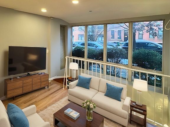 1BR 1.5BA Duplex Updated w/ In-Unit Laundry & High-End Finishes Beautifully finished and newly gut-renovated. Dishwasher Hardwood floors Recessed lighting Closets throughout In-unit washer & dryer Virtual doorman Eat-in kitchen with plenty of storage, island countertop, dishwasher, 5 burner gas range stove, & brand new refrigerator. Living room / dining area with wall to wall windows over the duplex stairs. Full bath features Jacuzzi soaking tub. On the lower level you will find a full in-unit washer / dryer, & a half bathroom along with a sizable storage closet beneath the stairs. Located on a quiet, tree-lined Park Slope block just 4 blocks from the southwest entrance to Prospect Park. Nearby attractions include the Nitehawk Theatre, Terrace Bagels, and Park Slope's famous 5th Ave, where you'll find gyms, bars, restaurants, specialty stores and just about everything you could need. Prospect Ave DNRW subway just an 8 min walk 15 St-Prospect Park FG subway just a 10 min walk 16 minutes from Manhattan.