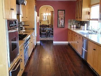 Chic and stylish 1926 Spanish, fully updated 5+3.5 with guest house in on one of the most coveted blocks North of Montana, Franklin school district location! Close to Montana Avenue shops and restaurants. Wonderfully remodeled and completely updated with beautiful finishes throughout. New wide plank distressed oak flooring in all rooms. New windows, new roof, and newer appliances including viking range and subzero refrigerator. Formal and informal dining rooms perfectly set off large kitchen. Spacious living room and family room with beamed volume ceilings with den set just off living room. 4 bedrooms upstairs and 1 down with another 1+1 in the guest house. Delightful, light and bright master with french doors and balcony. Backyard with pool, patio, lawn and guest house. On a wonderful block on one of the best streets in the area, this home has it all!!
