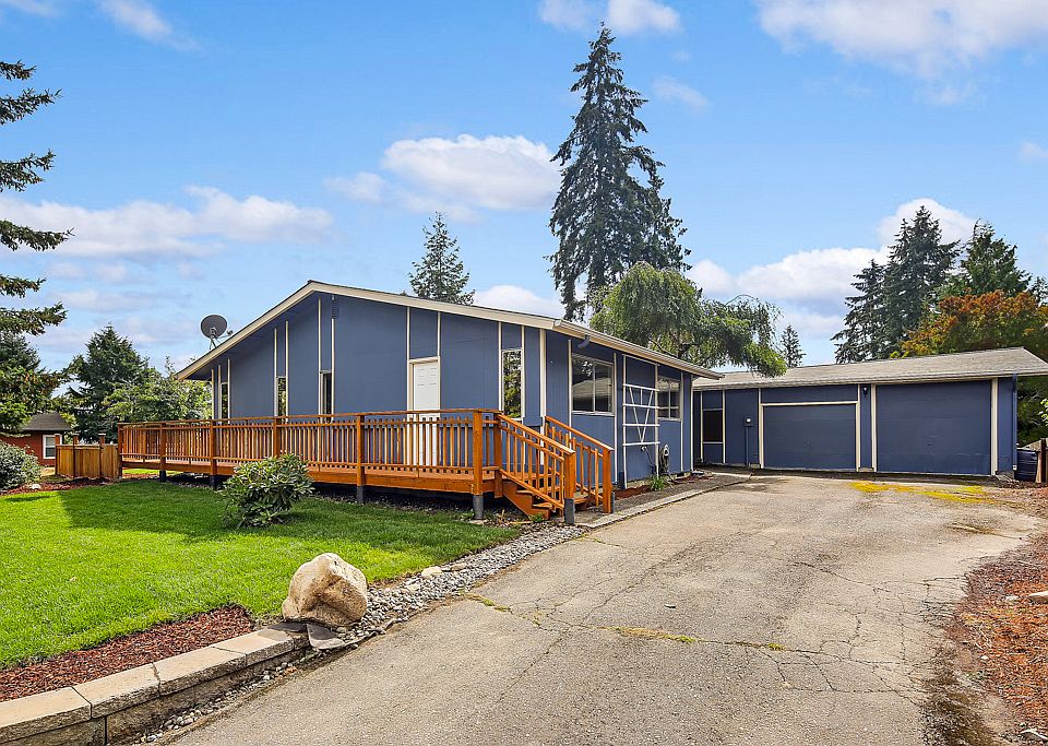 Stylish, updated mid-century rambler. Super convenient location, minutes to I-405, Canyon Park businesses, and downtown Bothell. 3 bedrooms, including master suite with walk-in closet, and full hall bath. Huge, open living and dining room with vaulted ceilings, and wall of windows. New carpet, interior & exterior paint, deck, and fence. Freshly landscaped yard with new sod. Huge attached 2 car garage. Great corner lot with large patio, and nice mountain and territorial views. This is a must see!