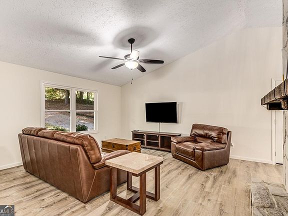 This stepless ranch offers exceptional value in a highly sought-after location just minutes from Main Street Downtown Woodstock, with easy access to shopping, parks, walking trails, and Highway 92. The open living room features a floor-to-ceiling stone fireplace and flows into a spacious dining area and kitchen with granite countertops, stainless steel appliances, and custom soft-close cabinetry. The primary bedroom includes a private bath with a tiled walk-in shower, while two additional bedrooms and a full bath provide plenty of space for family, guests, or a home office. A large back deck overlooks an expansive, private backyard-perfect for entertaining or a puppy paradise. With a two-car garage, no HOA, and no rental restrictions, this home is a rare find offering flexibility, space, and location all in one.