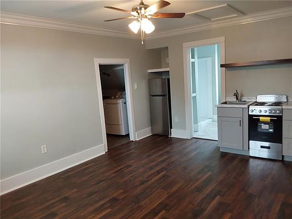 This Beautiful Studio Efficiency apartment, features a large Bathroom (11.8 x 8.1) with nice size Shower, Granite Counters on the Vanity & Sink with good storage space as well as extra shelving. Bonus Room comes with the Washer & Dryer & is 12.7 x 9.5 giving you more storage space & rods for hanging clothes. Open Efficiency Area with Kitchen is 16.4 x 11.9 has small range/oven, sink & refrigerator. A Daybed or would be great in this space to serve as a Bed & Sofa. Window unit is A/C & Heat. Outside there is a shared, Bricked, Covered Patio with Lights & grassy area to enjoy. This is the Upstairs Unit in the back, right by the Patio. Street Parking in front of home is available for this unit. (Sorry No Pets) MLS States 1 bedroom in order to submit, but it is a Studio where it's combined with the kitchen as well