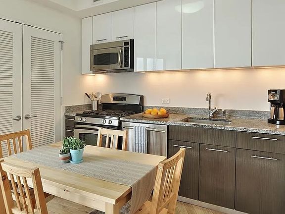 Incredible 2 bed 2 bath Condo home in a modern, doorman Fort Greene building. This beautifully renovated home has open views, massive windows, dual exposures, a breathtaking new kitchen, newly refinished flooring, and updated bathrooms. The open kitchen features ample storage, gloss white cabinetry, stainless steel appliances, classic subway tile backsplash, and elegant countertops.