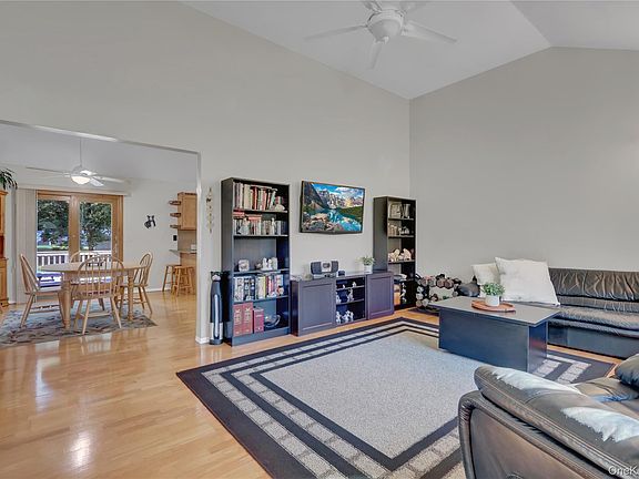This beautifully maintained home features vaulted ceilings, gleaming hardwood floors, and an open, sun-filled layout that’s perfect for both everyday living and entertaining. The spacious kitchen and dining area open to a deck through sliding glass doors, leading to a large, level backyard with a paver patio, built-in firepit, and in-ground sprinklers for easy lawn care.