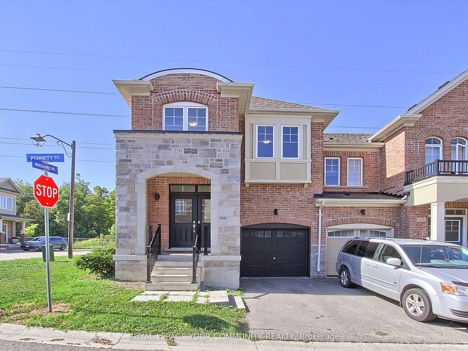 Welcome to 230 Bennett St! A Sun-Filled 4 Bed 3 Bath End-Unit Townhome That Feels Like A Semi. This Freshly Painted Home Features An Open Concept Main Floor Design With Combined Living & Dining Area, Tons of Natural Sunlight, Laminate Flooring, 2pc Bath & Access To Garage. The Stylish Kitchen Includes Centre Island, Stainless Steel Appliances, Extra Tall Cabinets & Breakfast Area With W/O to Your Deck. Backing On To Green Space & Future Park/Walking Trails, This Home Offers Ultimate Privacy With Urban Living! Step Upstairs To A Spacious Primary Bedroom Featuring 4pc Ensuite w/ Separate Shower Stall & Soaker Tub, Walk-In Closet & Lots Of Windows. The 2nd Floor Also Features 3 Additional Spacious Bedrooms & 4pc Bath! The Exterior Includes A Covered Porch, No Sidewalk & Freshly Painted Garage & Front Door. With A Great Location Close To All Amenities Imaginable - Upper Canada Mall, Highway 404 & 400, Yonge St Plazas, Schools, Hospital, Transit & Much More - This Home Has It All!