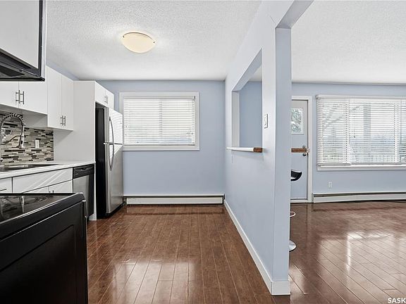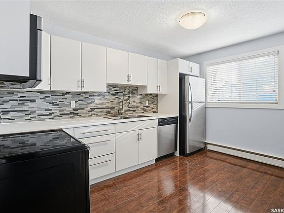 Great location and nice layout. Two good size bedrooms, four piece bathroom with in-suite laundry/storage room. The kitchen has updated white cabinets, eat at island, very functional space with the amount of counter top and location of appliances. Natural light in kitchen and living room. Plus a good size balcony - room for a bbq and bistro set. Laminate flooring throughout, new flooring in bedrooms, ready to move into. The washer/dryer appliances is all in one. In addition there is shared laundry available in the building. An electrified exterior outside parking stall - it's larger as its on the end. Condo fees include water and heat, common area insurance, lawn care, snow removal. Pets area allowed with restrictions. Smaller apartment condo building in a desirable neighbourhood of Arnhem, close to beautiful Wascana Park, walking paths. Easy commute to university and downtown, For more information or a viewing contact your salesperson.