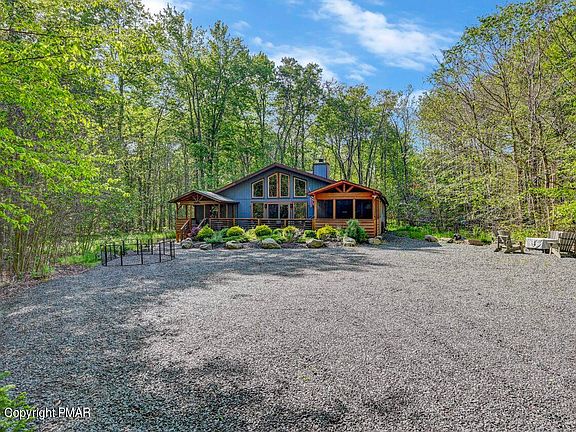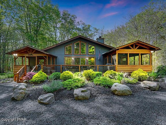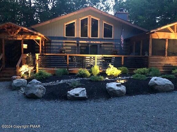 UNDER CONTRACT TAKING BACK UP OFFERS AT THIS TIME. This beautifully upgraded home features an open floor plan with one-floor living, including 4 bedrooms and 3 full baths. The living room is bathed in natural light, complemented by a spacious family room and dining area. This well-maintained property exudes a charming, rustic ambiance and sits on a large 1.07-acre wooded lot in the gated Timber Trails community of Pocono Pines. Nestled in a private, nature-surrounded setting, it boasts a large deck and screened porch perfect for outdoor entertaining. Additional fees grant access to the extensive amenities offered by the Lake Naomi Club, enhancing the appeal for residents. Creating a professionally landscaped environment that complements the natural surroundings while incorporating exterior lighting can transform any outdoor space into a stunning visual and functional area.The location is ideal for those who love outdoor activities and entertainment, with proximity to skiing, Kalahari, Camelback, casinos, shopping and much more.