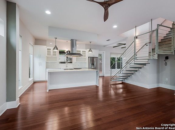 FIRST Month Rent FREE. Stunning contemporary home in prestigious Lavaca neighborhood. Walking distance to Southtown, King William, Hemisfair, several parks, and the finest restaurants in town! Gorgeous wood floors, stainless steel appliances/plumbing and light fixtures throughout home. Island Kitchen with quartz countertops, gas cooking. Private balcony with view of the Tower of Americas, fireworks during NYE and 4th of July! Private bath for each bedroom, formal dining, loft game room, open plan with plenty of natural light!