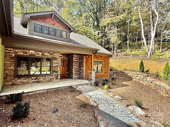 This is an awesome new custom home. It is 1 level living at its best. Tucked back in a park like setting, you'll love the natural surroundings provided by this gorgeous double lot. You will be greeted by a spacious covered front porch. Inside, the home has plenty of natural light. A stunning fireplace is the focal point of this open floor plan. It boasts a beautiful kitchen with high end appliances, granite, pantry, stunning wood floors, a split bedroom plan, and attention to detail throughout. The great room is open to the dining area and kitchen and has plenty of natural light. Off of the great room, it has a large rear, screened deck where you can entertain and enjoy the abundant wildlife and natural surroundings. The primary suite has a tray ceiling, and the primary bath has dual closets, dual vanities, and a stunning tile shower. This home is in the highly desirable Connestee Falls, which is a gated golf community that offers an abundance of amenities and is only a short distance from downtown Brevard and all that it has to offer.