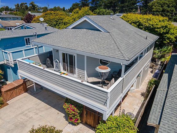 A short walk from the shore is this fantastic beach house, ready for you & your guests. The privacy fence leads to your vacation dream. The house's reverse floor plan includes a spacious open great room w/hardwood floors, gas fireplace, & sliding doors to the deck. A gourmet kitchen features custom granite & tile work, work island, spacious pantry, farmhouse sink & stainless appliances. There is a master bedroom suite, & upgraded bathroom w/custom tile work. Downstairs are two bedrooms, one with a half bath, as well as an office & a family room, & an upgraded full bath with dramatic custom tile work. These rooms also have hardwood floors & ceiling fans. A utility room has its own glass door to access an outdoor shower. The travertine tiled back patio is chock-full of entertaining features: a hot tub, fountain/firepit combo, deluxe outdoor kitchen that includes bar seating, built-in BBQ & wood-fired pizza oven, a retractable built-in TV. Close to restaurants, shops & the beach.