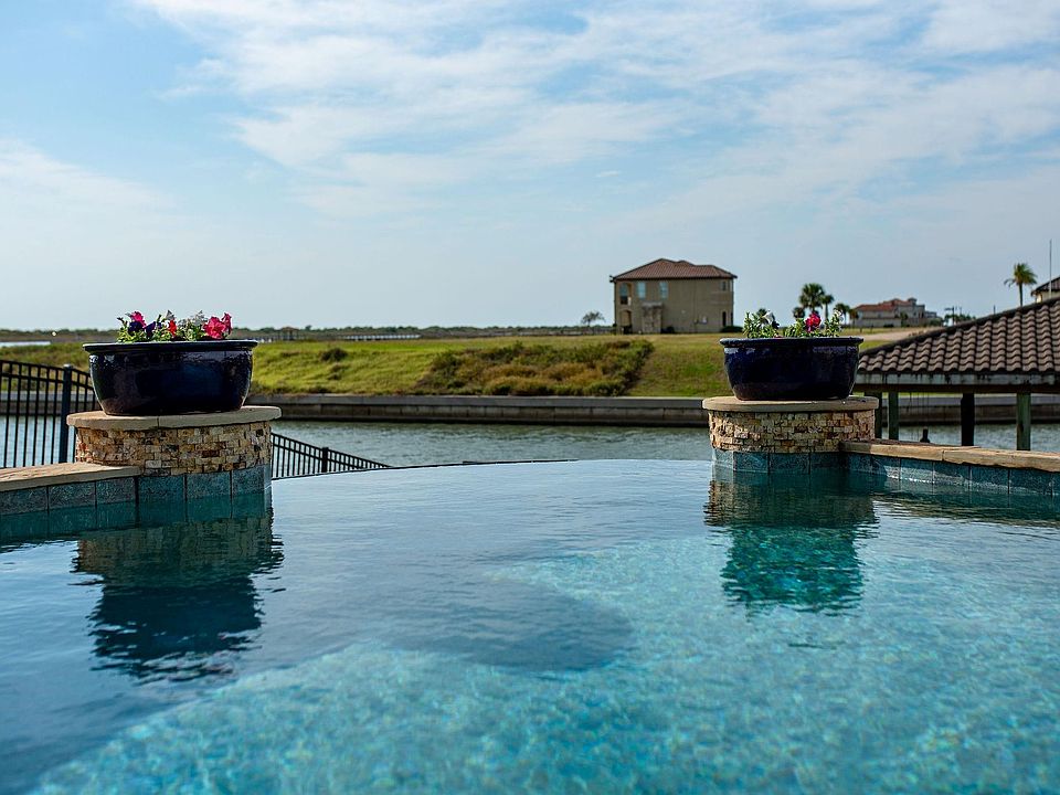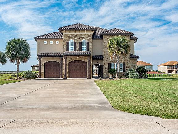 Winning Parade of Homes best of show, on the water, with unparalleled views of Espiritu Santo Bay, this custom home is one of a kind! With heated pool/hot tub overlooking the water, and an outdoor kitchen, this residence was built to entertain. Right off the patio and through the breezeway, enjoy the guest suite and bunk room suited for every child's dream. After a long day on the water, go upstairs to relax in the meticulously designed main living space, offering an open concept living room & kitchen fit for a chef, with wine fridge, cabinet lighting & 6-burner gas stove! Wake up and open your motorized shades for sunrise in the primary suite, offering a serene, spa-like ensuite bathroom. With a second story, split floorplan, this home offers two additional bedrooms off the living room, with a jack and jill bathroom. Even more impressive, the boathouse offers double slips and a fish cleaning table. Home sold furnished w/Generator! *More details under photos* Adjacent lot is available!