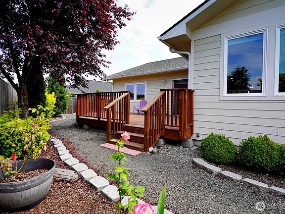This light and bright custom home located in the sought after Eagle Mountain Estates backs up to open space where you can enjoy mtn views and sunsets as you relax in the Jacuzzi on the back deck. Spacious kitchen with ample storage boasts New refrigerator, New gas stove, New water filtration system. Cozy up in the living room next to the New gas fireplace. Durable vinyl plank flooring and functional layout with a private primary bedroom. Oversized garage with wheelchair ramp has room for workbench/crafts. Wide hallways and doorways throughout plus accessible shower in primary bathroom. Just minutes from everything Sequim has to offer including the Discovery Trail, YMCA, Shopping, Restaurants and more. Schedule an appointment today.