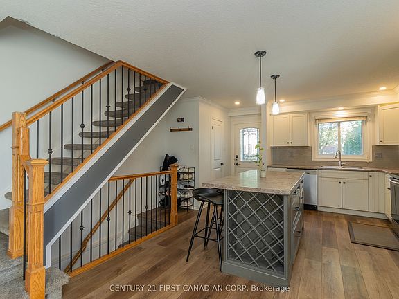Experience stylish, move-in-ready living in this beautifully updated 2-storey condo townhouse perfectly located close to schools, parks, shopping, public transit, and quick highway access. This inviting home offers three spacious bedrooms, two full bathrooms, and a main-floor powder room, thoughtfully updated for modern comfort and convenience. The open-concept main floor features a bright living and dining area that flows seamlessly into a renovated kitchen with sleek finishes, ample storage, and generous counter space ideal for both everyday meals and entertaining. Step outside to your private, "court-like" fenced patio with a charming vegetable garden, offering a peaceful and low-maintenance outdoor retreat. Upstairs, you'll find three well-appointed bedrooms, including a generous primary, along with a refreshed full bathroom. The fully finished basement is a true bonus, featuring a spacious recreation room, a newly added full bathroom with modern fixtures, and a separate flex space perfect for a home office, gym, or hobby room. Enjoy the convenience of two private parking spaces, water included in your condo fees, and ample visitor parking. Whether you're relaxing indoors or enjoying your private outdoor space, this property offers a lifestyle you'll love coming home to.