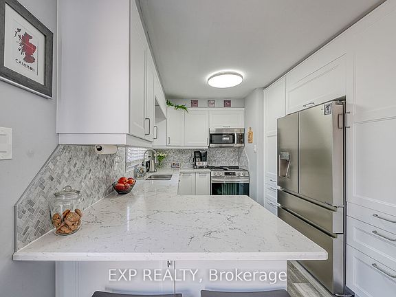 Beautifully Renovated Condo for Sale Desirable East London Location. This stunning condo has been thoughtfully renovated with modern style and comfort in mind. Featuring high-end finishes throughout, including brand-new stainless steel appliances, quartz countertops, and more, its truly move-in ready. Kitchen includes-two double level corner lazy susans-two full floor to ceiling pantry cabinets with multiple sliding drawers-multiple pot and pan drawers-under cabinet valances and lighting, quartz counter top with double undermount sink and peninsula, 4 new stainless steel appliances including a 36" refrigerator with water, ice, and an extra programmable compartment, brand new upstairs floor to ceiling ceramic tile shower with new vanity and quartz countertop with large oval right-height toilet-new vinyl plank flooring through out the two levels-new high quality fans with lights in each bedroom-new washer and dryer-three year old water heater (owned), new rubbermaid maintenance free garden shed-large one year old sienna deck accessed through patio door to a beautiful treed area behind unit, The bright, open-concept layout is perfect for todays lifestyle, while the unspoiled basement provides a blank canvas for your personal touch whether its a home gym, office, or additional living space. Don't miss the opportunity to own a beautifully updated home in one of London's most desirable east-end communities!
