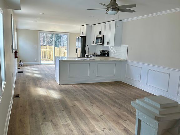 BORDENTOWN School District! This fully renovated three-bedroom, two-bathroom duplex features a brand new kitchen, appliances, cabinets, refrigerator, dishwasher, microwave, sink, & faucet. Open floor plan with family room fireplace and front area for in home office or play area. The primary bedroom and bathroom are located on the first floor. The second floor contains two bedrooms, a brand new full bathroom, and a laundry area. The basement and attic offer additional storage space. A fabulous front porch and a beautiful back deck that overlooks a fenced-in backyard. Situated near major highways for easy commute, fine dining establishments, walking distance to a variety of amenities, a desirable community and neighborhood. Walking distance to downtown Bordentown. The adjacent property is undergoing renovations and will be completed to match the same style and look of this unit.