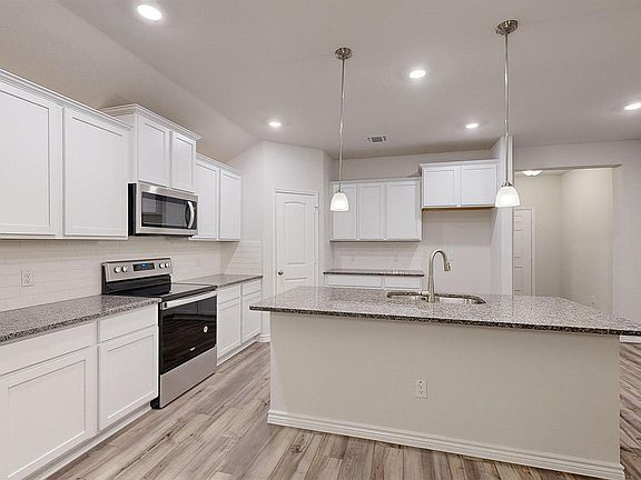 Find your home in Turnbo Ranch Traditions in Killeen, Texas with the Everett floorplan. With approximately 2,150 sq. ft., you’ll have the perfect space in this 3-4 bedroom, 2 bath layout. Park your car or store your belongings in the attached 2-car garage. When you enter the home, you’ll be greeted with the beautiful open-concept design living area, that blends the kitchen and great room. The kitchen features flat panel birch cabinetry and granite countertops. It is set off from the living area by a kitchen island with a built-in sink. Connected to the kitchen in the dining area that can be opted for the study. Walking through the great room, you’ll find the primary bedroom with an attached bathroom. The bathroom has a double vanity and a walk-in shower that can be opted for a tub and shower, and a spacious walk-in closet for all your belongings. The secondary bedrooms are cozy and carpeted, with plenty of closet space and easy access to a separate bathroom. The game-room with an option of a bedroom gives you control to customize the house to meet your needs. Enjoy nature from the backyard under the covered patio that is connected to the great room. Not only does every D.R. Horton home have a floorplan built for everyday functionality, but smart home technology is also included. Monitor your home and control your comfort through your phone, the Qolsys panel, or voice command. Talk to us today to learn more about why the Everett floorplan is perfect for you!