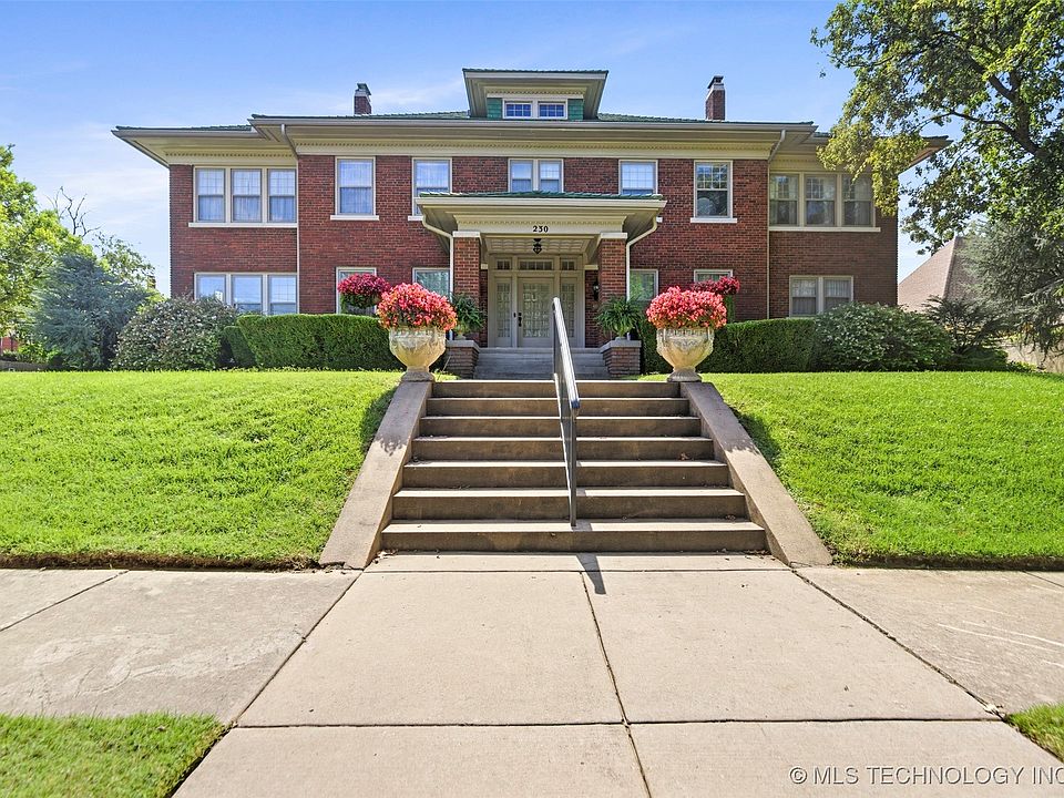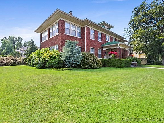 Rich in history and architectural character, this Prairie Style residence with Italian Renaissance details sits on a rare double lot in the heart of Maple Ridge. Built in 1922 for Tulsa’s first Cadillac dealer, D.D. Wertzberger, and later home to the Betty Rombough School for more than 60 years, the property has lived many lives. Nearly 30 years ago, the current owners purchased it directly from the school and have since painstakingly restored nearly every detail, returning it to its grandeur as a private residence.