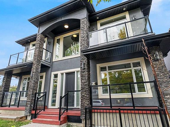 **Open House Oct' 18 Sat 12-3pm, 19-Sun-1-4pm**Masterpiece of Modern Elegance in Parkdale Nestled just steps from the serene Bow River pathways and the lush beauty of Elbow Park, this exquisite residence offers the perfect balance of nature, luxury, and urban convenience. Ideally situated near the Alberta Children’s Hospital, Foothills Hospital, and Market Mall, every essential—whether shopping, recreation, or emergency care—is mere minutes away. Behind the property, tranquil walking and cycling trails invite you to unwind and reconnect with the outdoors. Set on a generous 45-foot lot in Calgary’s highly sought-after inner-city enclave of Parkdale, this stunning stucco home is a showcase of architectural sophistication and exceptional craftsmanship. Spanning over 4,000 sq.ft. of opulent living space, including 2,573sq.ft. above grade, it features five spacious bedrooms and four-and-a-half luxurious baths. From the moment you enter, the home’s grandeur is undeniable—beginning with a soaring 19-foot foyer, beautifully tiled floors, and a dramatic open-riser staircase that exudes modern artistry. Expansive windows flood the open-concept interior with natural light, highlighting fine finishes and elegant design details throughout. The main living area is anchored by a sleek gas fireplace, offering both warmth and sophistication—a perfect setting for relaxed evenings or formal gatherings. The chef-inspired kitchen is a true statement of luxury, boasting a large granite island with breakfast bar, two-tone custom cabinetry, a built-in wine cooler, and an elite JennAir appliance package. French doors lead seamlessly to an oversized patio, ideal for al fresco dining and entertaining, complete with a rough-in BBQ gas line and integrated sound system. A spacious main-floor office or flex room, along with a refined powder room, completes this impressive level. The upper floor unveils a private master retreat that redefines comfort and elegance. Featuring a west-facing balcony, a romantic two-sided fireplace, and a spa-worthy ensuite with a freestanding soaker tub, glass-enclosed shower, and bespoke walk-in closet, this suite is designed for pure relaxation. Two additional bedrooms—one with its own ensuite—plus a stylish full bath provide exceptional accommodation for family or guests. The fully developed lower level extends the home’s luxurious living with a vast recreation and media area, two additional bedrooms, and a full bath. A remarkable highlight is the legal basement suite with in-floor heating and a private entrance, offering both comfort and versatility—ideal for extended family, guests, or potential rental income. Additional features include a central vacuum system, built-in audio throughout all three levels, and advanced exterior security cameras for peace of mind. Every element of this residence has been thoughtfully curated to offer a lifestyle of refined elegance, comfort, and modern sophistication—all within one of Calgary’s most desirable riverside communities.