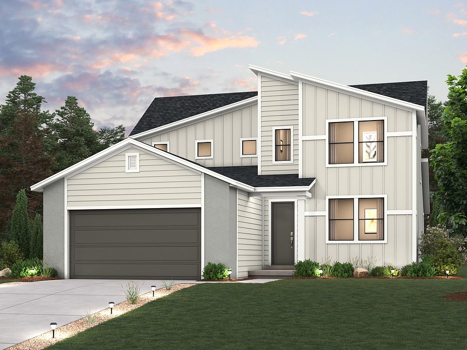 The Lassen at Pinnacles Reserve takes gold for fantastic design! This modern floor plan showcases an open kitchen that flows into a dining area and a great room-it's the perfect layout for entertaining. The primary suite is conveniently located on the main level, boasting a walk-in closet and a deluxe bath with dual vanities, a walk-in shower, and a soaking tub. Three additional bedrooms upstairs offer walk-in closets rounds out the second floor. Also includes main-floor study and mudroom, and an unfinished lower level. Features 9ft ceilings on the main floor and basement.