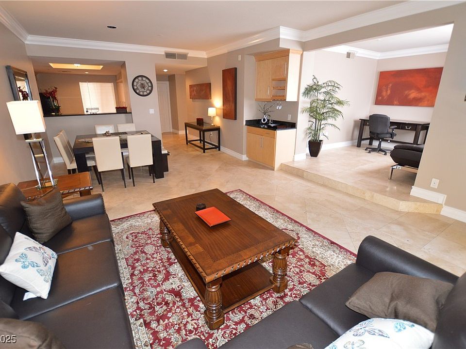 FULLY FURNISHED LUXURY CONDO W/DEN near MAIN POOL VIEW, 2bdr/2bath corner unit. Condo is just 1-1/2 blocks to the strip. Unit is equipped with stainless steel appliances also featuring crown molding, Stone and wood flooring, granite counter tops etc.