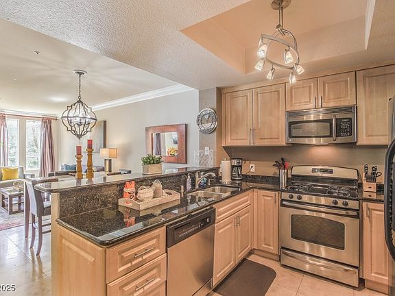 Luxury 1 bedroom Condo Walking Distance To The Strip. Beautiful condo with the best of both worlds. Quiet relaxation and only minutes from the excitement of The Strip. Travertine/Marble Floors, Engineered flooring bedroom. Fully equipped Kitchen with Stainless Steel Appliances & Granite Countertop, Washer/Dryer located in the condo in separate closet.. This luxury community offers pools & Spas, Gym, Tennis courts, Raquetball, Underground Parking. 2 Blocks to LV Strip