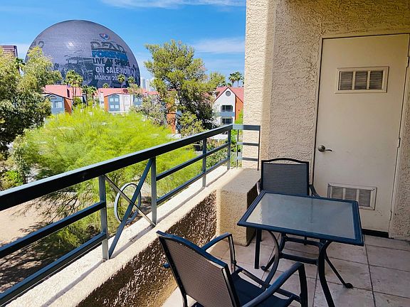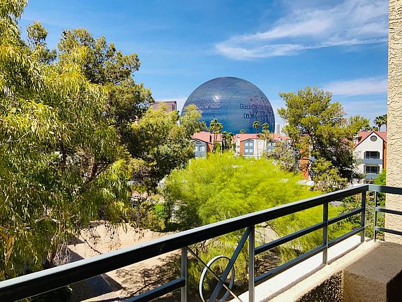 Wake up to incredible views of the MSG Sphere in this one-bedroom, one-bath condo located at The Meridian Private Residences. This unfurnished unit boasts fresh paint and modern laminate flooring throughout, providing a clean and inviting atmosphere. The large bedroom features a large walk-in closet. The updated kitchen is equipped with granite countertops and stainless appliances. Located just one block off the famous Las Vegas Strip, The Meridian provides luxury amenities that enhance your living experience. Enjoy peace of mind with 24-hour guard-gated security and benefit from assigned underground parking. Dive into relaxation at one of the two pools, unwind in the cabanas or heated spas, or stay active on the tennis courts. For indoor sports enthusiasts, take advantage of the air-conditioned basketball and racquetball courts, along with a fully-equipped 24-hour fitness center. Don't miss out on this incredible opportunity! Your new lifestyle awaits!