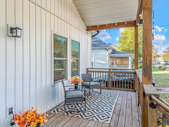Welcome to this stunning and completely move-in ready 1900's Craftsman, nestled on a flat corner lot in historic Oakwood-Lincoln Park! Featuring a massive picturesque covered front porch with vaulted ceiling and board & batten siding, this home is the perfect blend of exterior vintage charm with modern interior comforts. Renovated from the studs in 2022, you'll adore every amenity this home offers: open concept living/dining room with soaring 9.5-foot ceilings and 65-inch flat screen TV that conveys, new kitchen with high-end stainless steel appliances, gleaming counters with tile backsplash, and huge island with additional bar seating! Make your way to the enormous primary bedroom with gorgeous ensuite bathroom featuring double vanity sinks, walk-in tiled shower with custom glass door, bonus storage area, and generous closet with new built-in shelving! Enjoy flexible use of the additional spacious bedroom that would be perfect for guests or utilized as your home office and/or exercise room. And you'll love the separate laundry room with new washer/dryer and space for added pantry storage. Enjoy morning coffee or evening dinner on the cozy back deck overlooking a flat backyard with expansive driveway and new firepit! Additional recent updates include Smart thermostat, Simplisafe alarm/camera system, new window treatments, decorative interior/exterior lighting, door keypads, new storage shed, and much more! Conveniently located around the corner from the breweries and restaurants of N Central, only a few blocks from Happy Holler, approximately 6 minutes from the Old City/Downtown, and 7 minutes from the University of TN! Don't let this incredible home pass you by!