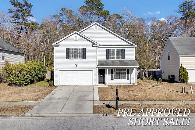 BANK PREAPPROVED SHORT SALE!A charming, family-sized abode featuring four bedrooms and 2.5 baths beckons with its inviting ambiance. The first floor boasts warm wood-look laminate flooring that extends seamlessly throughout the living area and dining area. At the front of the home, a large family room and open dining area featuring a gas fireplace, leads into a generously proportioned kitchen equipped with abundant counter space and an island. The kitchen's breakfast counter enhances the dining experience and equipped with water filtration and touch light switches for ease. The carpeted second floor reveals an expansive primary suite featuring a vaulted ceiling, two closets, and a large master bath.Two additional bedrooms and a bonus room, which could serve as a fourth bedroom, round out the second floor. Outdoors, an oversized patio that extends along the rear of the home offers ample seating space, perfect for gatherings or relaxing under an umbrella. The backyard features a fully fenced area and backs to a wooded buffer, ensuring unparalleled privacy. Completing the outdoor amenities is a convenient storage shed, enhancing the functionality of this delightful family home. The Bridges of Summerville is a planned community with a neighborhood pool and 2 playgrounds, located behind what will be Dorchester County's Pine Trace Natural Area, ''an urban oasis boasting over 300 acres of undisturbed, mature hardwood forest.'' 230 Eagle Ridge is less than 2 miles to Summerville Medical Center, 10 miles to Target and Northwoods Mall with lots of restaurants and shopping, 13 miles to Charleston International Airport/Boeing, and 33 miles to Folly Beach or the Isle of Palms.