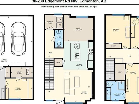 Spacious Townhome with Modern Comforts. Welcome to this beautifully designed 1,692 sq. ft. south-facing townhome, filled with natural light and thoughtful details throughout. This home offers 3 bedrooms plus a versatile office/den and 3 bathrooms, creating plenty of space for families, professionals, or anyone who values comfort and flexibility. The second floor is the heart of the home, showcasing an open-concept design with a bright dining area, stylish kitchen, and inviting living room. A charming brick-and-wood wall with electric fireplace adds warmth and character, while the balcony provides a perfect spot for morning coffee or evening relaxation. Practicality meets convenience with a laundry room located on the second floor, while all bedrooms are privately tucked away on the third level. A double attached garage offers secure parking and extra storage space. With quick possession available, this home is move-in ready and waiting for its next owner.