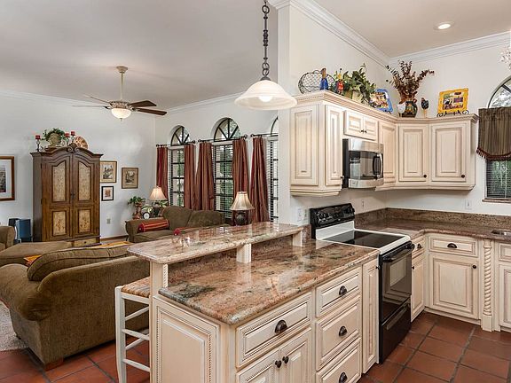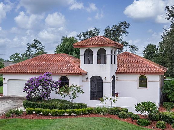 One of a kind! the Spanish Mission style house in Placid Lakes is now on the market. You must see this remarkable home offering 10' ceilings with crown molding, arched doorways, gourmet kitchen with custom upgraded cabinets & granite countertops & large pantry. Mexican tile thruout, Entry has stairway to tower with beautiful leaded glass double doors that open to large open foyer. Dining room has lovely floor to ceiling windows and living room is oversized, bedrooms and baths are spacious. Bright and cheery sun room. Exterior spanish style covered walkway to house and courtyard from two car garage. The 26x17 screened courtyard has brickpavers and large fountain with wrought iron enclosures. Beautiful barrel tile roof, new A/C, located on 1 1/2 lots with mature landscaping.