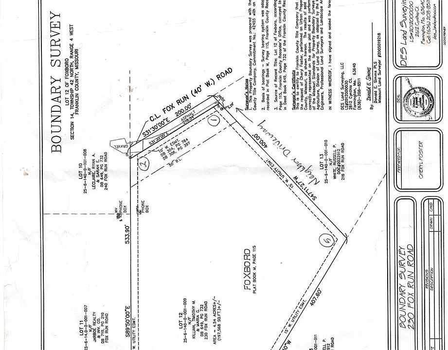 4.5 acre lot in Foxboro. Access to community well, private lake and tennis court. Located at a dead end street. In MLS for comp purposes Additional Rooms: In Platted Subdv.