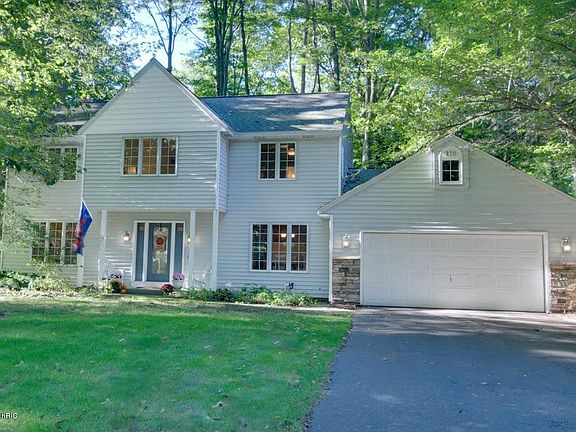 Classic two story home on Holland's north side, and the stately neighborhood of Marigold Woods. Close to Downtown Holland, Lake Macatawa, and Holland State Park, this home sits on one of the premier locations in Holland. The kitchen features ceramic tile floors, subway tile back-splash, granite top center island, and under cabinet lighting. Living room has wood burning fireplace and 12 foot Anderson French door that takes in the beauty of nature outdoors. Two formal rooms include a dining room and den with crown molding, built-ins, and board & batten. Beautifully finished lower level rec room with quartz wet bar. Upstairs master bedroom has a master suite and attached office. Extras include newer roof, furnace, A/C, and garage lockers w/ shoe cubbies