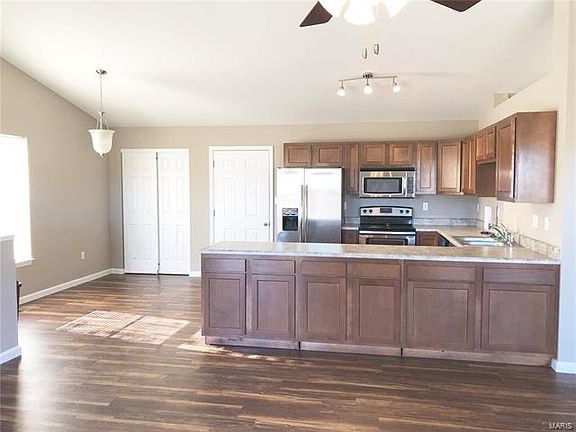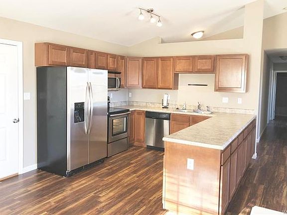 This cozy 3 bedroom 2 bathroom home just outside of city limits is the perfect starter home! This home offers an open concept floor plan with a huge living room and vaulted ceiling with tons of natural light! The kitchen features custom cabinets with stainless steel appliances, a large pantry, breakfast bar and opens to dining area. The back patio has a great country view you can enjoy while having privacy!!
