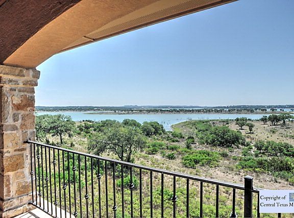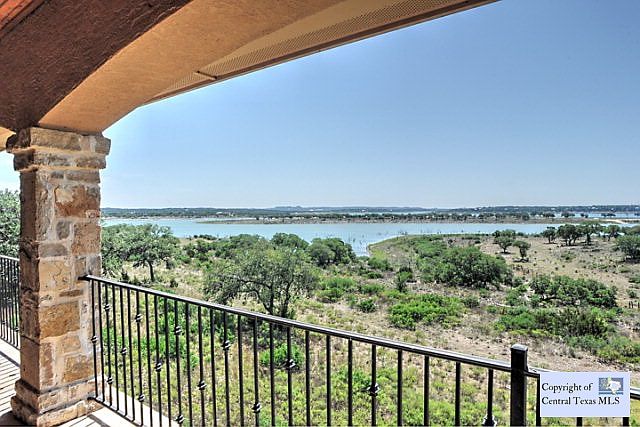 Watch sunrise & sunset on the lake with unobstructed views Fantastic waterfront property w/panoramic views in the gated community of The Peninsula in Mystic Shores. 12' ceilings, gleaming hardwood floors, granite countertops in a bright kitchen w/island, stainless steel Bosch appliances, master suite with jetted tub and beautifully tiled shower. Formal dining room, huge family room with gas fireplace, office w/built-in bookcases. Covered balconies on both floors. Upstairs has a game room, two bedrooms--each with a private bath. One of the best lots on Canyon Lake. View on uTube!
