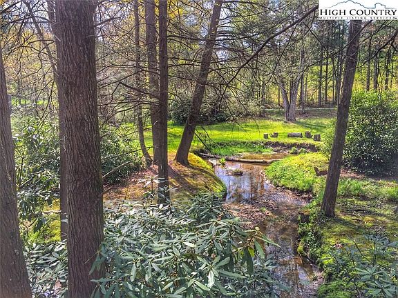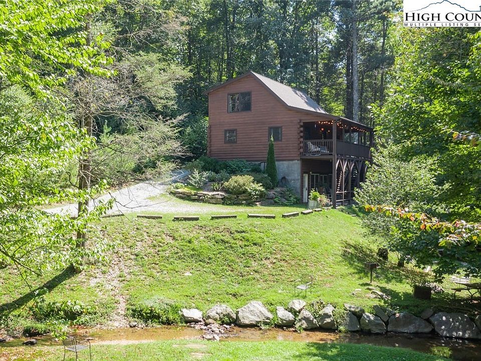 Creek Front Cabin in Boone! This 3BR/3BA log cabin is nestled in a private setting and easily accessible, year-round, on level roads just 6 minutes from the Boone Golf Course and 3 minutes off of the Blue Ridge Parkway. With an open floor plan & tasteful, "mountain-feel" decor, this FURNISHED (with exceptions) home has functioned as, and would work well for, full-time residents, as a vacation getaway, or as a turnkey rental/investment property (short term rentals allowed!). Vaulted, tongue & groove ceilings create a light & open floor plan while exposed beams & hardwood floors warm up the interior as it flows to the outdoors. Running the length of the home, the back deck provides a great outdoor living area overlooking the backyard & mountain creek that runs along the property. Enjoy a bedroom & full bath on each floor, 2nd living space in the lower level suite, private primary suite on the upper floor, and main-level amenities including an office/bonus room and spacious kitchen with granite countertops, open to the dining area & living room. Amenities: new roof ('20), new HVAC/heat pump ('21), chicken coop, tiles & tile inlays in all 3 bathrooms, picturesque & private tree-lined lane/driveway to home, ample parking, & great spot in backyard for firepit by the creek.