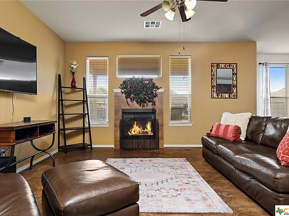 Traditional two story home offering open floor plan and dependable key features for families to enjoy. The elevated center island affords homeowners a breakfast bar top, and additional seating. Notable features include a spacious front entry, flexible upstairs loft space, newly installed carpet, backyard potential, and a cozy fireplace for winter nights. Blocks away from the community elementary school and community pool. Stroll down the main boulevard to access 5mi Park with Blanco River access. Commuters will appreciate the easy highway access traveling north or south on IH35.