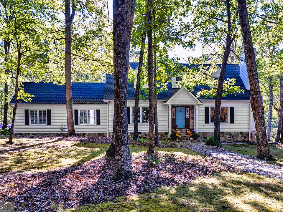 **Seller to pay for new survey prior to closing** Meander through the trees and fields as you drink in the serenity this pastoral property provides on approximately 5 acres of land with a 30'x60' separate drive-through equipment building (with half bathroom) and a large equipment parking pad. The main five-bedroom/four full bathroom house greets you with notable and traditional design cues as you approach, including triple gables and decreasing radius stone-faced steps as you enter to marvel at the vaulted half cathedral ceiling as it stretches up to reveal the second story balcony with enough space for an office or general flex use. The initial living area is draped in natural light to reveal medium-stained natural hardwood flooring and highlighted with crown molding throughout. Moving on to the second living area you pass through the true chef's kitchen swathed in earthy tones and accented with a silver-sheen metal backsplash with two ovens and two sinks to make meal prep a breeze. This area features a large center island with outlets, voluminous storage space in the dark-stained cabinetry, matching appliances, and ease of use as the living concept opens on the other side of the kitchen to reveal a secondary living space with floating wooden beams and stone front fireplace under the vaulted ceiling. Continue and you will find the sleeping quarters which include the owner's suite, laundry room, and three additional bedrooms. The owner's suite is serviced by its own bathroom (renovated in 2024) and a one-step entrance shower. The two other bedrooms are provided with a full bathroom in the hallway that leads either outside or downstairs to the two-car garage and extra storage space. The fifth bedroom or additional flex space is located on the second floor immediately opposite the balcony and its closet is already plumbed if you want to make it a bathroom or kitchenette. This home has been lovingly maintained and thoughtfully upgraded with the following items. Please see additional upgrade sheet for full list-new roof in 2022, two hot water heaters, two HVAC units (heat pumps-one is zoned-installed in 2018 & 2022, whole house fan, new windows in 2016, new well pressure tank 2024, whole house vacuum, and one acre of blueberries! Portions of the acreage are currently in conservancy and zoned as such. Shown by appointment only.
